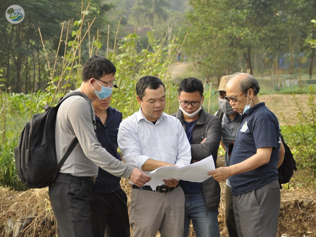(from left to right) CCD’s team is discussing with the leader of Xuan Ngoc Minh JSC and surveying the valley in Ngoc Lac town