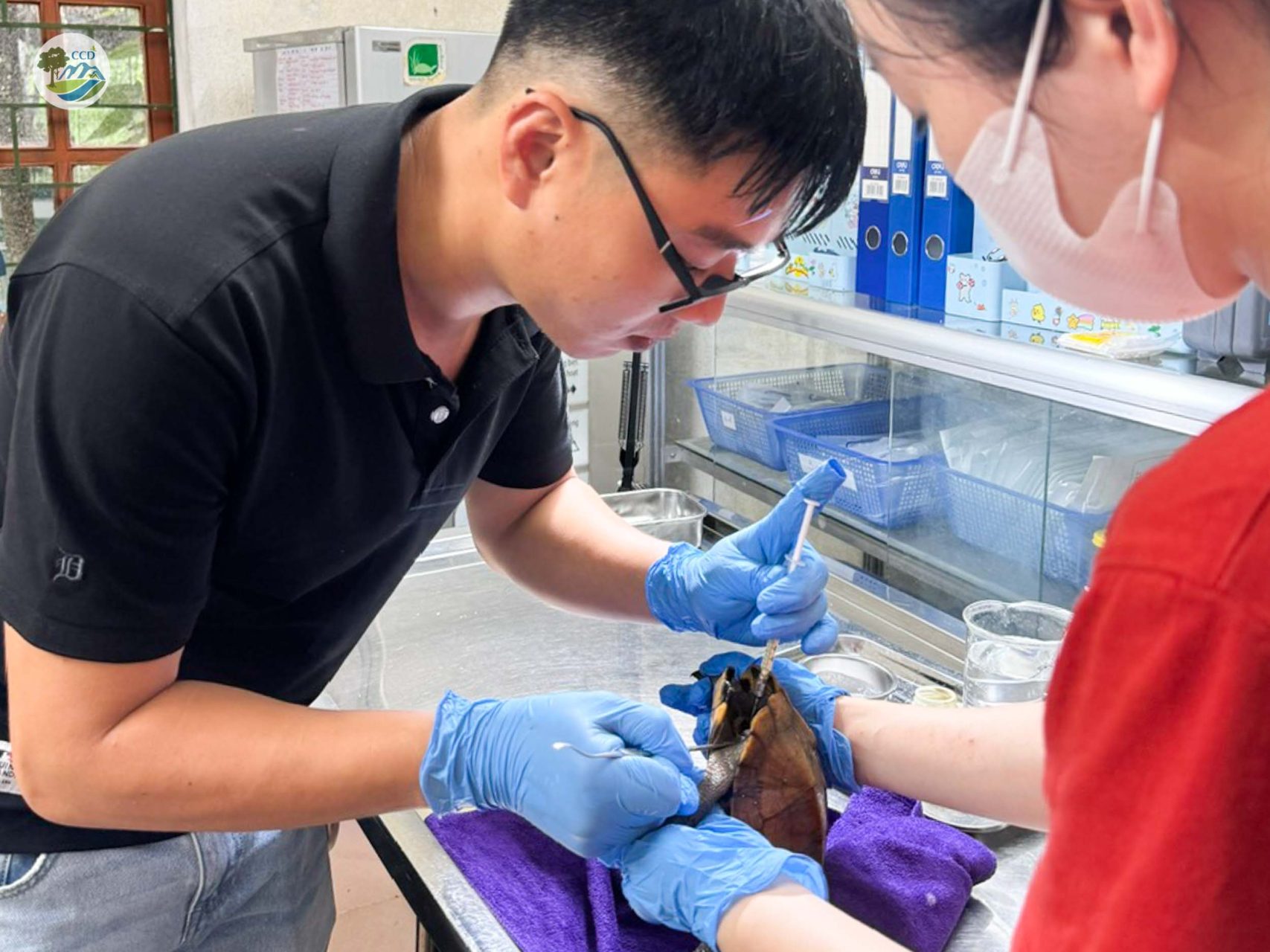 In July, the Center for Nature Conservation and Development (CCD), in collaboration with the Asian Turtle Program (ATP) of Indo-Myanmar Conservation, conducted a training course on turtle rescue and care for the veterinary staff at the Wildlife Rescue, Conservation, and Development Center. The training shared experience and expertise in rescue procedures, care, identification, and documentation, as well as providing guidance on health checks, weight monitoring, and creating a suitable living environment for turtles at the Center.