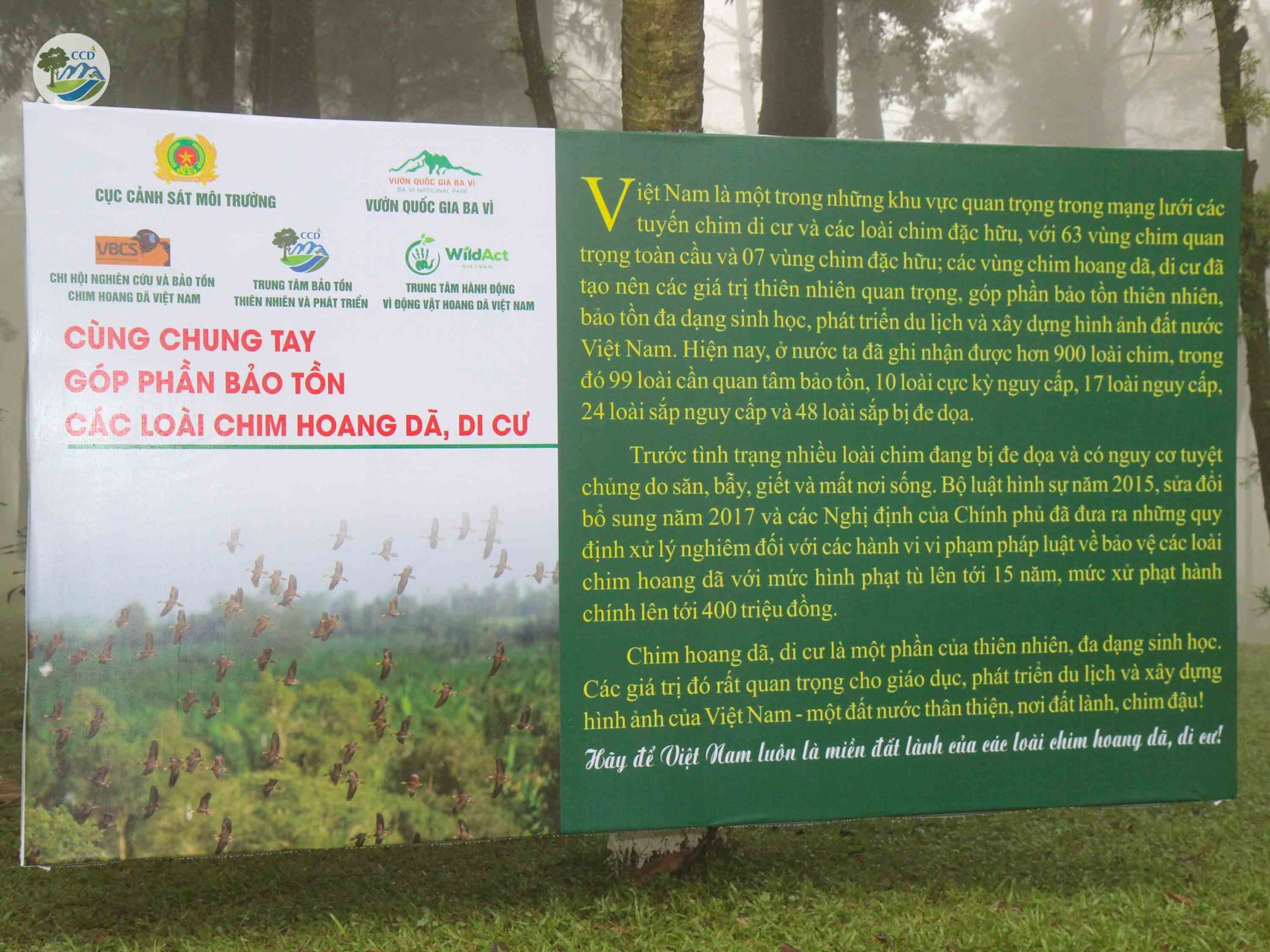 Readily respond to the objectives of the Plan, contributing to initiatives to raise public awareness and promote legal dissemination on wildlife protection, Center for Nature Conservation and Development (CCD), Vietnam Wild Bird Research and Conservation Chapter (VBCS), and other conservation organizations opened a photo exhibition with the theme "Join hands to protect migratory birds" within the framework of the launching event. With more than 40 photographs carrying vivid messages of wild, migratory birds and its anthroprogenic threats, the exhibition aims to evoke the love of nature and promote public participation in the protection of wild, migratory birds in particular and biodiversity in general.