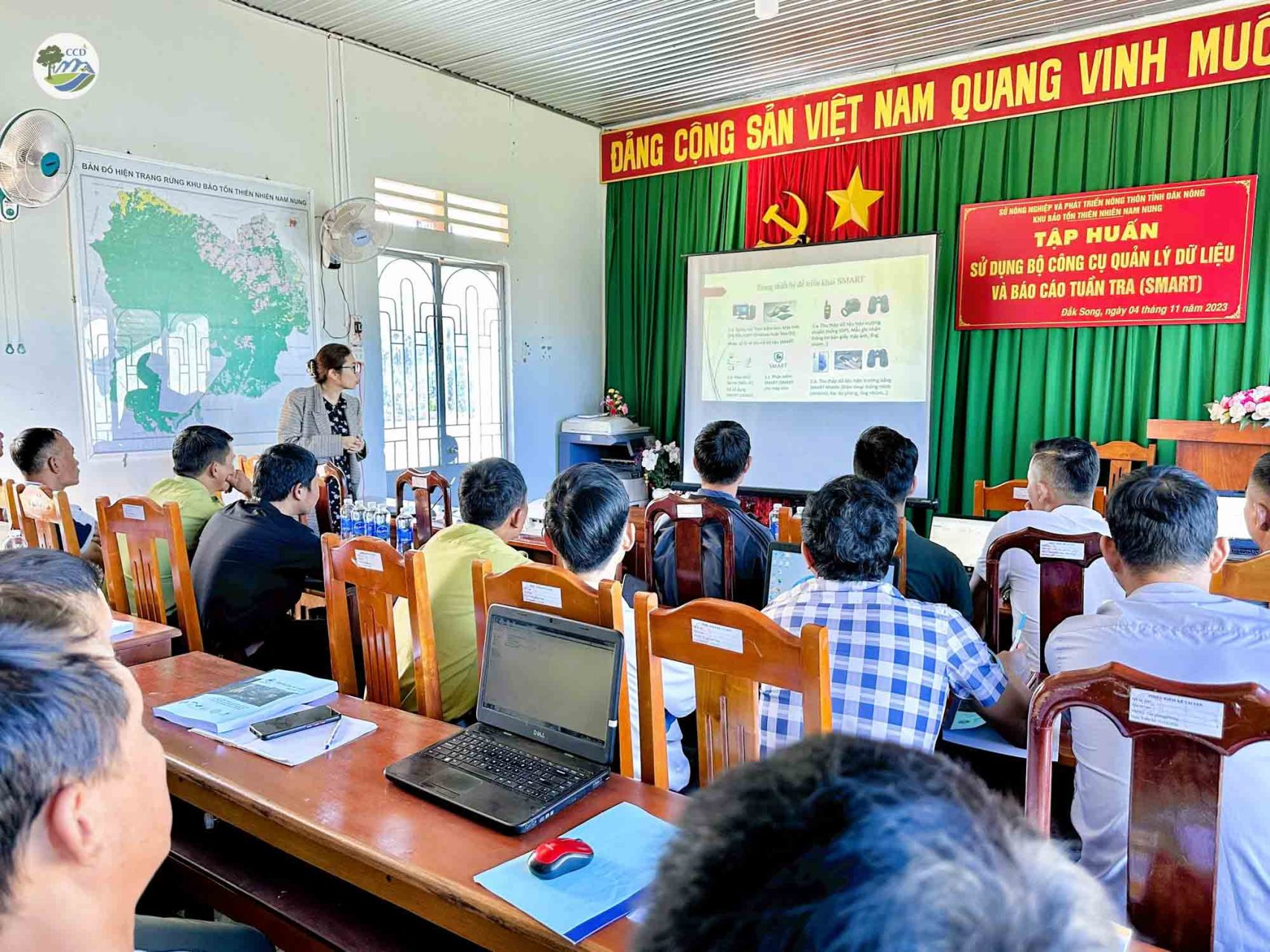 Nam Nung Nature Reserve is within Dak Nong province. The Reserve consists of the upstream of two large rivers: Dong Nai, Krong No and evergreen broadleaved forest ecosystem. Nam Nung is a home to many wildlife, with some endemic species of Vietnam and Indochina, entailing the requirements for its staff to enhance their capacity and have standardized procedures of surveying, reporting. As a result, a training on implementation of Spatial Monitoring and Reporting Tools (SMART tools) for more than 30 staff of the Reserve was held by Center for Nature Conservation and Development (CCD) and Nam Nung Nature Reserve.