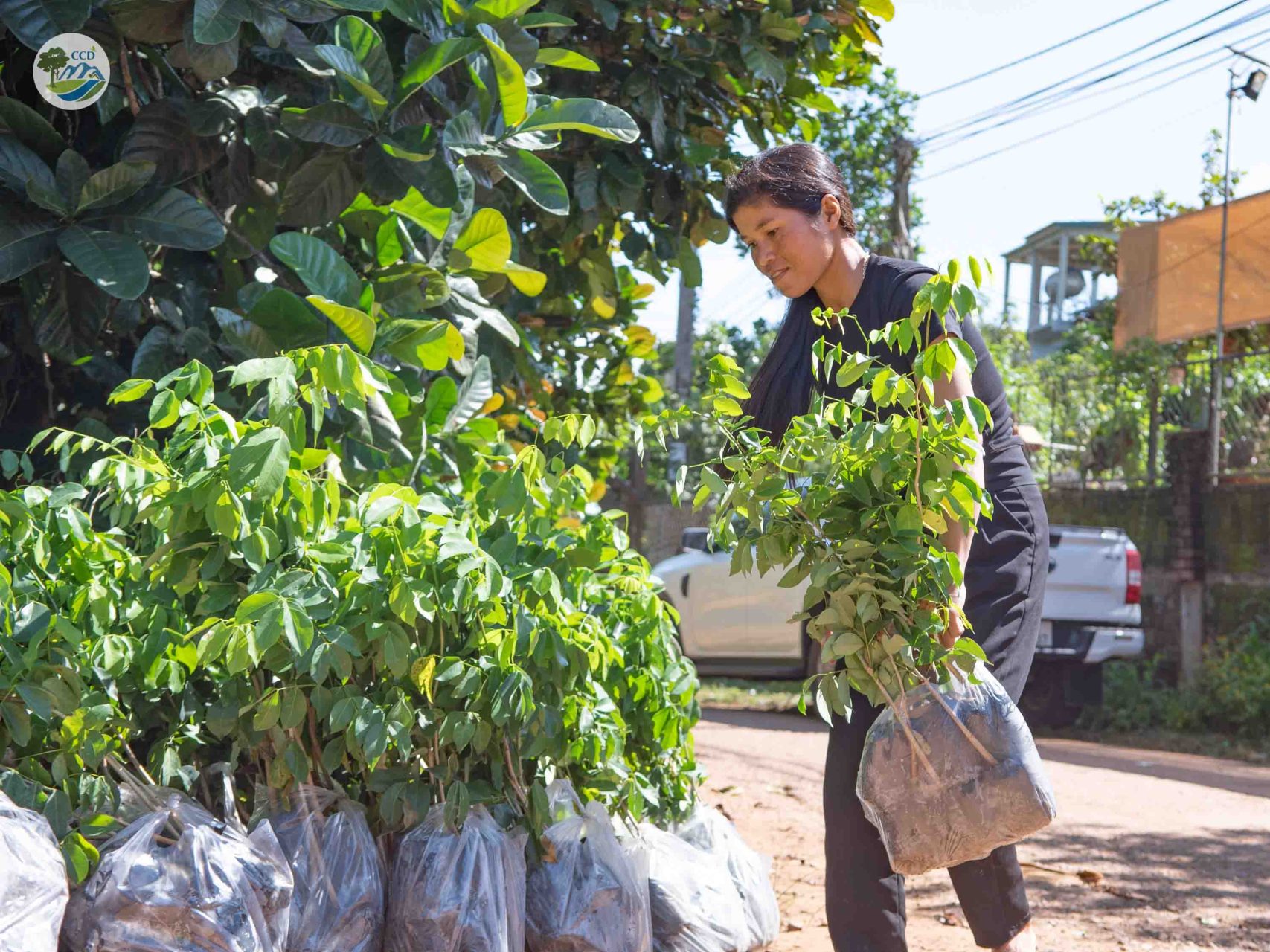 from left to rightPicture 1: Vigorous seedlings delivered to the peoplePicture 2: CCD's team coordinated with representatives from the People's Committee, forest rangers, suppliers, and transport units to ensure the correct recipients, quantities, species, and delivery locations for the seedlings.Picture 3: CCD's team providing silvicultural techniques of the tree species for local people.©CCD/2024