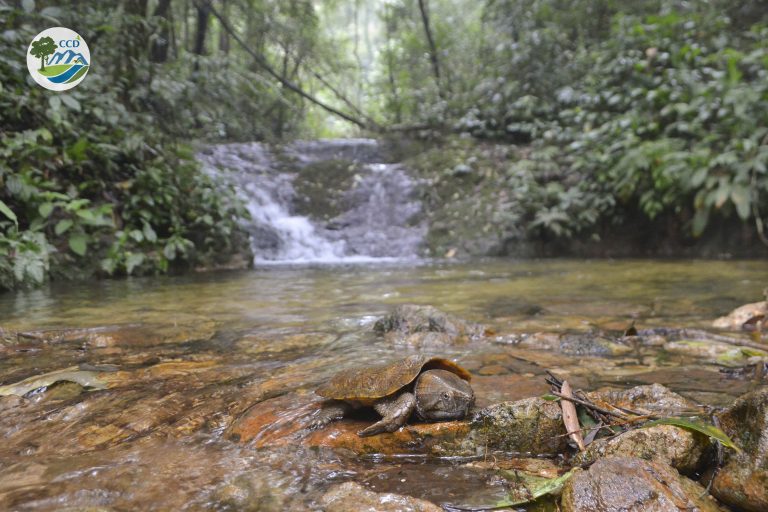 As part of the project: “Conservation for turtles and tortoise in Xuan Lien Nature Reserve, Thanh Hoa province”. November 2020, Center for Nature Conservation and Development (CCD) in collaboration with Xuan Lien Nature Reserve conducted a field survey for turtles in the reserve. At least 2 turtle species include the Big-headed turtle (Platysternon megacephalum) and the black-breasted leaf turtle (Geoemyda spengleri) were identify in this survey, both species are listed Endangered by the IUCN, in addition, they are strictly protected by Vietnamese law (Decree 06/2019/NĐ-CP). During the survey, we turtle poaching has not been recorded. Interview surveys were conducted in some villages in Bat Mot commune, several turtle shells and five live Manouria impressa were recorded in the local people’s houses. These results suggested that, perhaps poaching of turtles from the wild was still happening at local villages, our team, however, has not yet recorded any information on turtle trade.