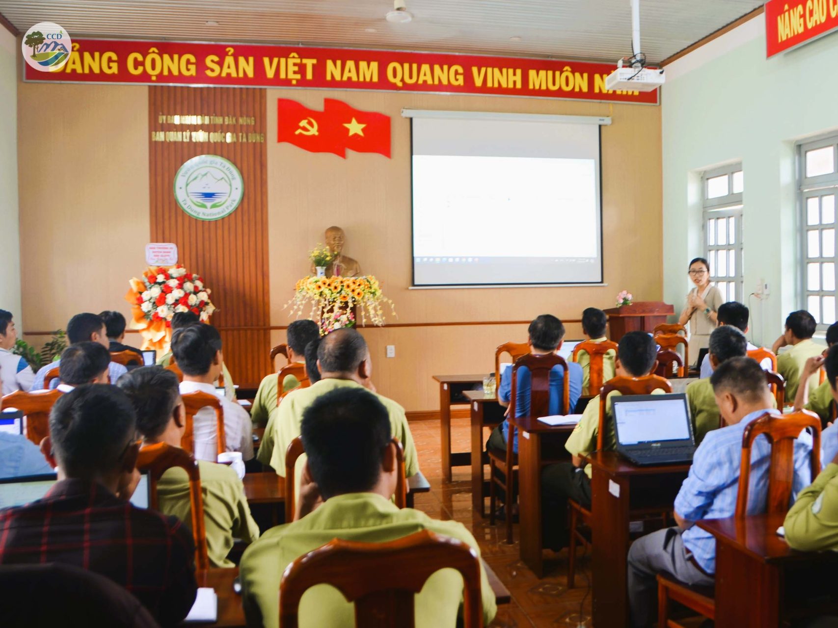 To enhance the capacity of staff and the effectiveness of conservation activities, in June 2024, Center for Nature Conservation and Development (CCD) cooperated with Ta Dung National Park to organize the "Data Management and Patrol Reporting Training Program with SMART'' for over 30 staff members from various departments, five ranger stations and mobile teams. The training introduced Spatial Monitoring and Reporting Tools (SMART) and gave participants practices in building data models; establishing patrol activities; data collection, entry and management; and compiling comprehensive reports. The training covered and pragmatically applied SMART Desktop and SMART Mobile, thus standardizing the toolkit for patrolling, management, study, and monitoring biodiversity in Ta Dung National Park.